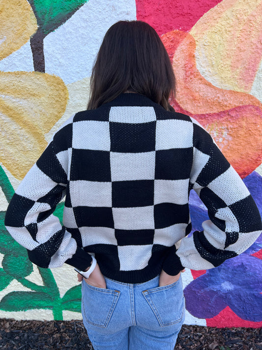 Black & White Plaid Knit Sweater