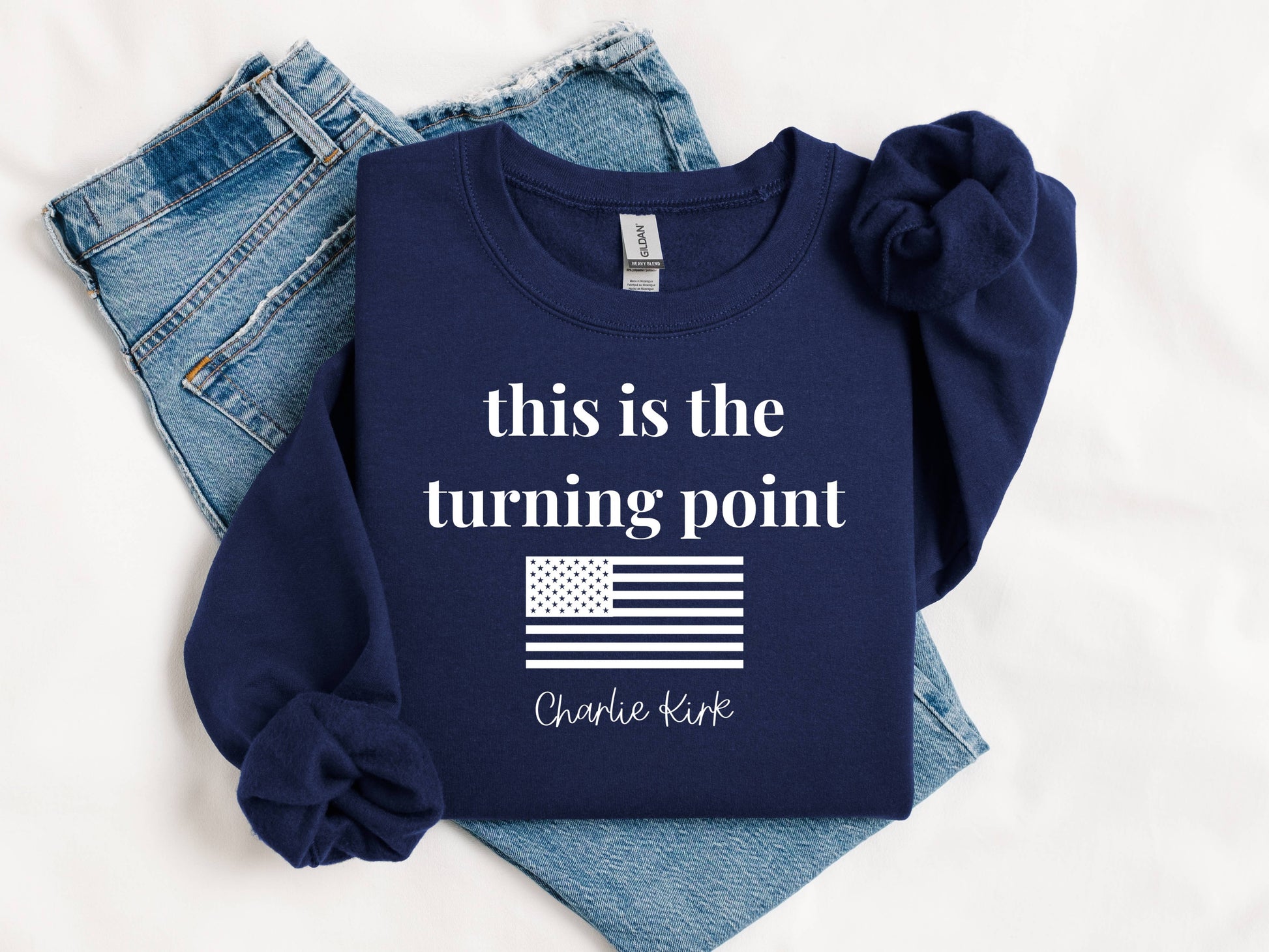 Charlie Kirk! Turning Point! Navy TEE SHIRT