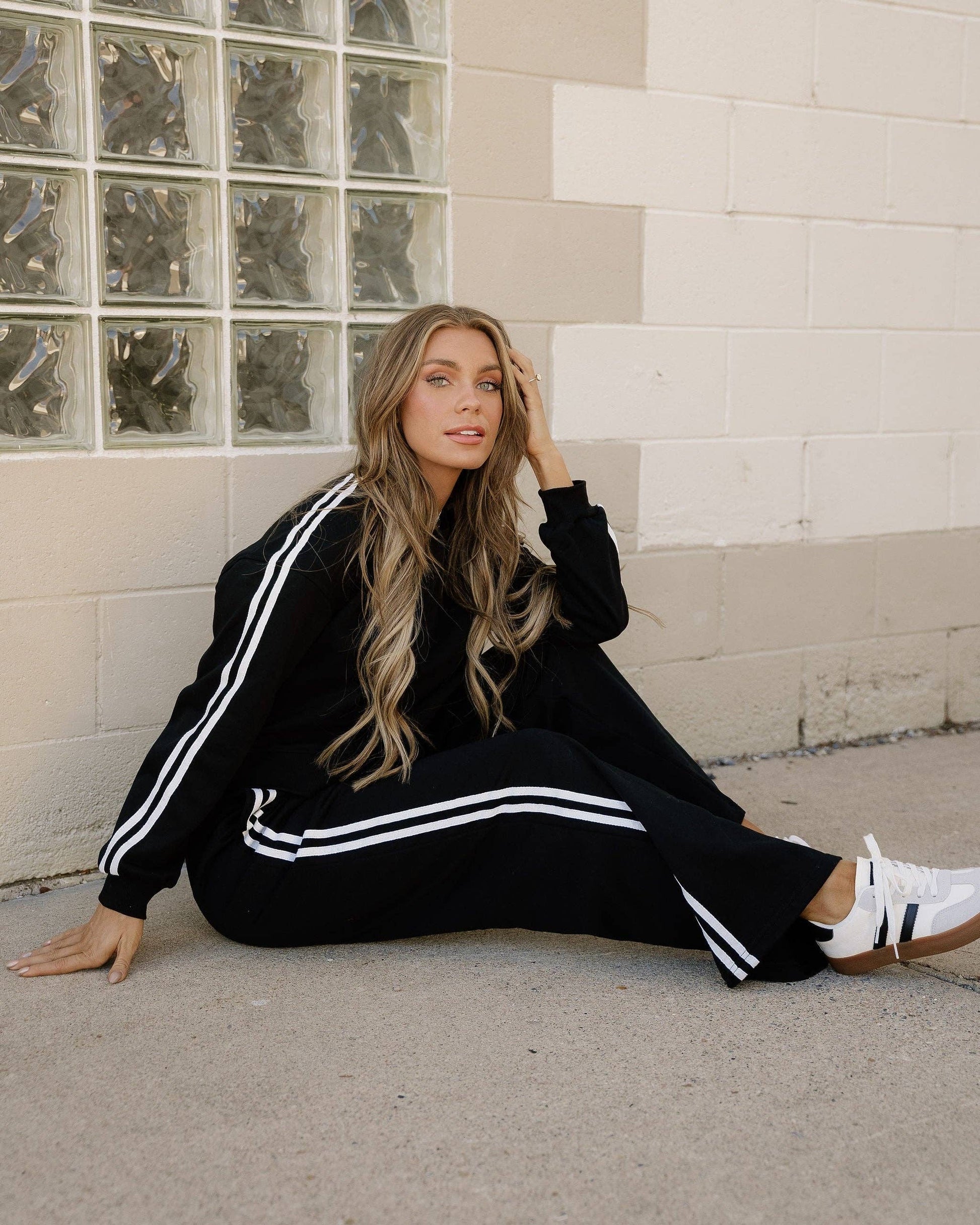 Rock that retro 90s energy with this black varsity pullover and pant set—the ultimate throw-on-and-go combo for literally any vibe. Pair the cozy pullover with the roomy long pants (hello, functional pockets!) and you're ready for Saturday brunch, Sunday errands, or whatever the weekend throws your way. Dress it up with sneakers and a baseball cap, or keep it casual for post-church cleanup duty. Comfort meets nostalgia in one effortless set.